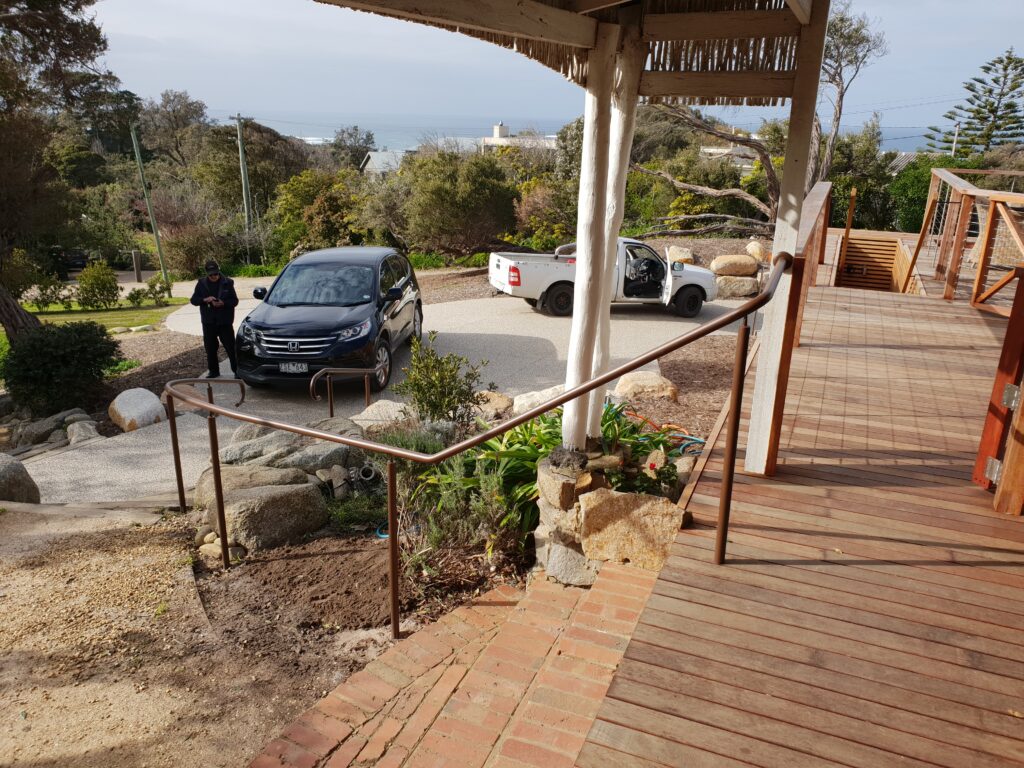 Project completed in Flinders featuring fully custom-designed handrails fabricated from 316 stainless steel. The handrails were powder coated in a Core10 finish, delivering a contemporary weathered steel appearance while maintaining the durability and corrosion resistance required for coastal conditions. This solution ensures a long-lasting, low-maintenance finish suited to the harsh coastal environment.
