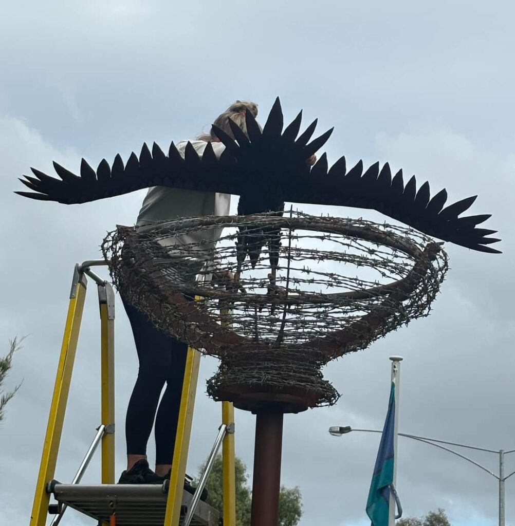 We then designed and fabricated a unique barbed wire nest, adding a touch of rugged beauty to the installation. A custom-made pole was also created to securely perch the eagle, ensuring a sturdy and lasting display.